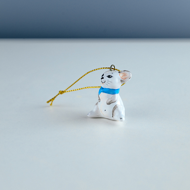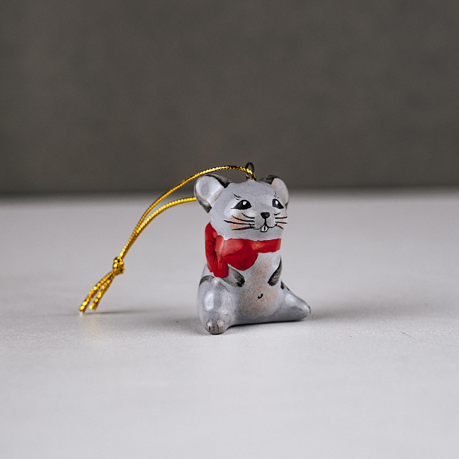 Данное изделие ручной работы представляет фигурку милого мышонка с бантиком. Именно это животное начинает цикл Восточного календаря. Мышь считают символом индивидуализма, работоспособности и продуктивности, символом семейственности, символом инвестиций. Фигурка мыши будет особенным акцентом в интерьере. Мышонок принесет удачу, будет интересным украшением новогодней елочки и замечательным подарком людям, рожденным под этим знаком, или всем – к Новому году и Рождеству, особенно в год Мыши.