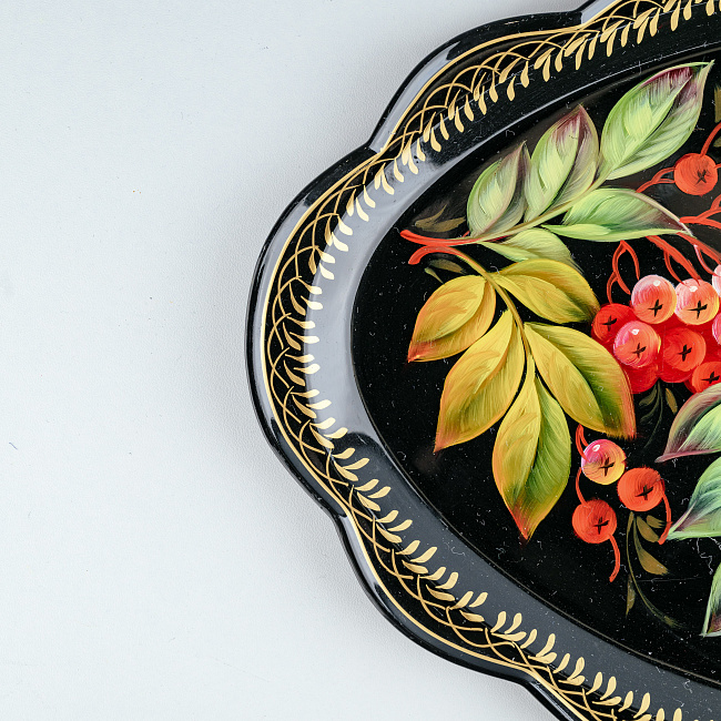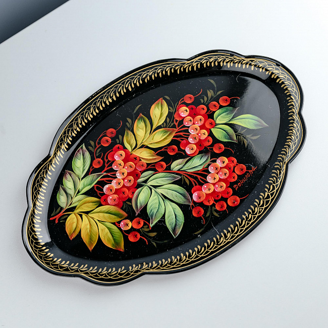 Поднос, выполненный в традиционной технике "Жостово". Металл, авторская роспись, ручная работа. Подлинность изделия подтверждается сертификатом. Этот поднос так и кричит о весне, приближении лета, красоте и изяществе. Разве можно не заметить крапотливый труд мастера, который так трепетно вырисовывал каждую линию этой цветочной композиции. Невероятные работы, невероятных мастеров Жостово.